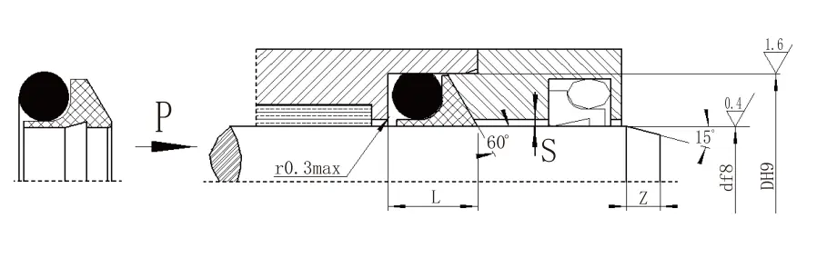| ملاحظة: 1. للضغط> 60 ميجا باسكال ، تستخدم منطقة جذر الختم H8/F8 التسامح المناسب ، وختم الضغط العالي الفائق Smax <0.05. | |||||||