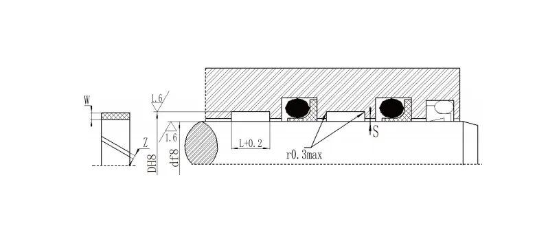 L --- طول الحلقة D --- قطر العمود D --- قطر ثقب W --- سمك الحلقة z --- خلوص قطع