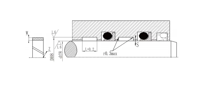 L --- طول الحلقة D --- قطر العمود D --- قطر ثقب W --- سمك الحلقة z --- خلوص قطع
