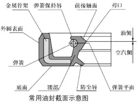 يتكون هيكل ختم زيت الهيكل العظمي من ثلاثة أجزاء: جسم ختم ، وتعزيز الهيكل العظمي وربيع لفائف الإيقاع الذاتي. ينقسم جسم الختم إلى أسفل ، الخصر ، الشفة الحافة وختم الشفة وفقًا لأجزاء مختلفة. عادةً ما يكون القطر الداخلي لختم زيت الهيكل العظمي في الحالة الحرة أصغر من قطر العمود ، وله "مبلغ تداخل" معين. لذلك ، عندما يتم إدراج ختم الزيت في مقعد ختم الزيت والعمود ، فإن القوة المرنة لحافة ختم الزيت وقوة الانكماش في نابض لفائف الزاحف الذاتي تنتج قوة تثبيت شعاعي على العمود ، وبالتالي الحصول على أفضل تأثير الختم.