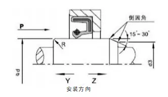 2. تصميم العمود الدوار والأخاديد: يجب أن يكون سطح العمود أملسًا وخاليًا من النتوءات. يمكن لعلامات المعالجة الحلزونية أن تخلق تأثير ضخ، مما يؤدي إلى التسرب. من المستحسن أن يتم طحن منطقة تركيب ختم الزيت إلى خشونة سطحية تبلغ Ra0.1-0.5μm، لتصبح أكثر سلاسة مع زيادة السرعة. لسهولة التركيب والتفكيك، يجب تصميم العمود والأخاديد بحواف مشطوفة أو مستديرة، انظر الشكلين 1 و2.