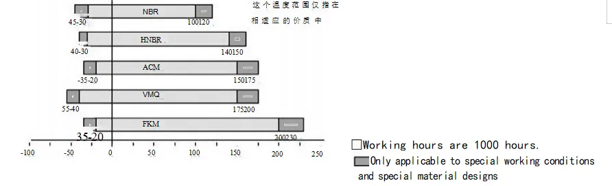 هناك العشرات من العوامل التي تؤثر على تأثير الختم. إلى جانب ختم الزيت نفسه، مثل المادة والهيكل، فإن عوامل أخرى مثل الوسط ودرجة الحرارة والضغط والتشحيم والسرعة وخشونة السطح تؤثر أيضًا بشكل مباشر على تأثير الختم، وهذه العوامل غالبًا ما تتفاعل مع بعضها البعض. الرسوم البيانية التالية هي للإشارة إلى المستخدم فقط.