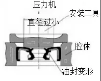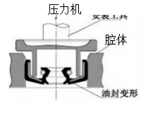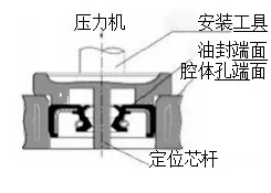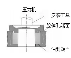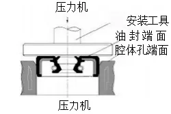هذه الطريقة قابلة للتطبيق فقط عندما يكون الوجه النهائي لختم الزيت والوجه النهائي للتجويف متساطحين. عندما تعمل معدات الضغط بسرعة، يجب وضع ختم الزيت بشكل صحيح؛ وإلا قد يحدث اختلال في المحاذاة. |